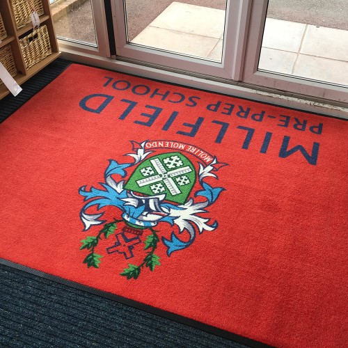 Please see the photograph of our lovely logo mat. Brilliant we love it! It looks amazing in our entrance. The children and parents love it too!